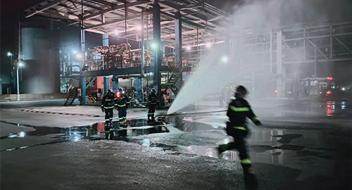 3月23日晚,泰兴经济开发区专职消防队来我公司进行了夜间突发事件应急处置演练。