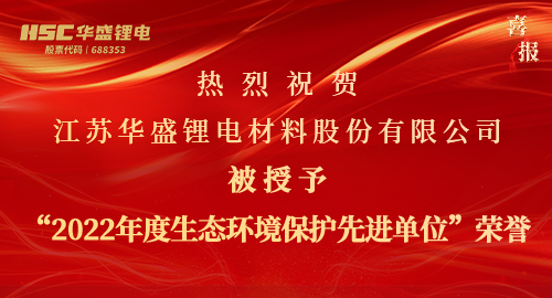 【HSC华盛锂电】热烈祝贺华盛锂电被授予“2022年度生态环境保护先进单位”荣誉