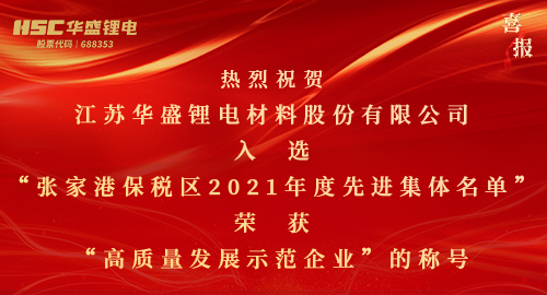 【HSC江苏华盛】热烈祝贺江苏华盛入选张家港保税区2021年度先进集体名单