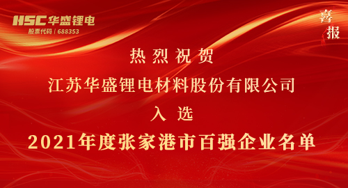 【HSC江苏华盛】热烈祝贺江苏华盛入选2021年度张家港市百强企业名单