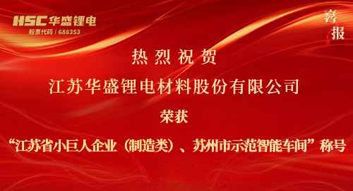 江苏华盛锂电材料股份有限公司荣获“江苏省小巨人企业(制造类)”、“苏州市示范智能车间”称号!