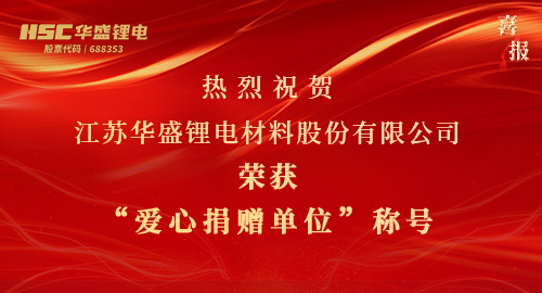 【HSC华盛锂电】热烈祝贺华盛锂电荣获“爱心捐赠单位”称号