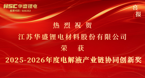 【HSC华盛锂电】热烈祝贺华盛锂电荣获2025-2026年度电解液产业链协同创新奖