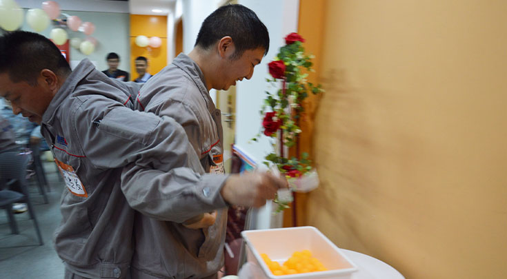 随着现场流程的推进逐渐欢快起来,进入集体切蛋糕环节,大家一起共享生日蛋糕带来的甜蜜与幸福,分蛋糕、品水果、忆往昔、话未来。生日会游戏环节把现场气氛推向了最高潮,“你划我猜、小鸡啄米”两个互动小游戏进行分组比赛,寿星们发挥默契、相互配合共同完成游戏,最终由4位寿星赢得了公司精心准备的夏季生日会伴手礼各1份。