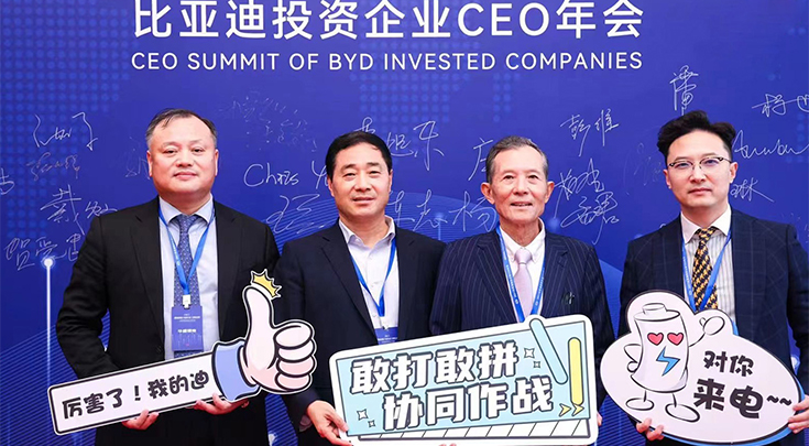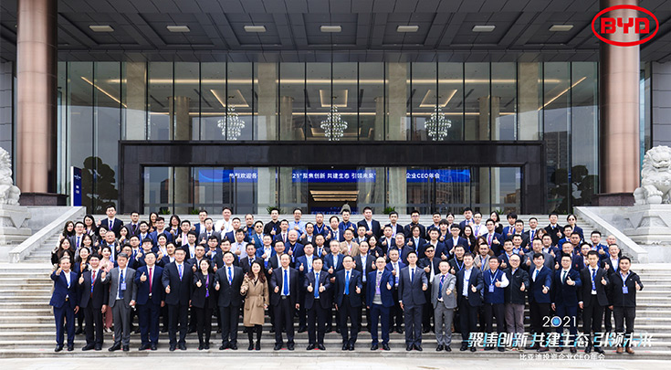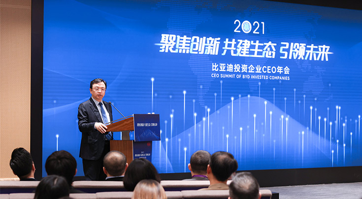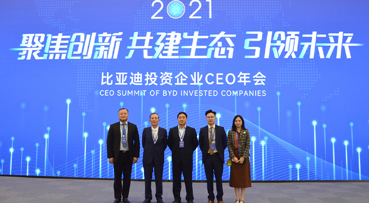 12月23日,2021“聚焦创新,共建生态,引领未来”比亚迪投资企业CEO年会在深圳比亚迪全球总部坪山举行,比亚迪集团董事长兼总裁王传福先生、比亚迪集团董事会秘书李黔先生等领导出席此次活动。江苏华盛受邀参加本次投资企业CEO年会,公司董事长沈锦良先生、总经理沈鸣先生、张家港杨舍镇农联村党委书记赵建军先生、副总经理李伟锋先生等参加活动。