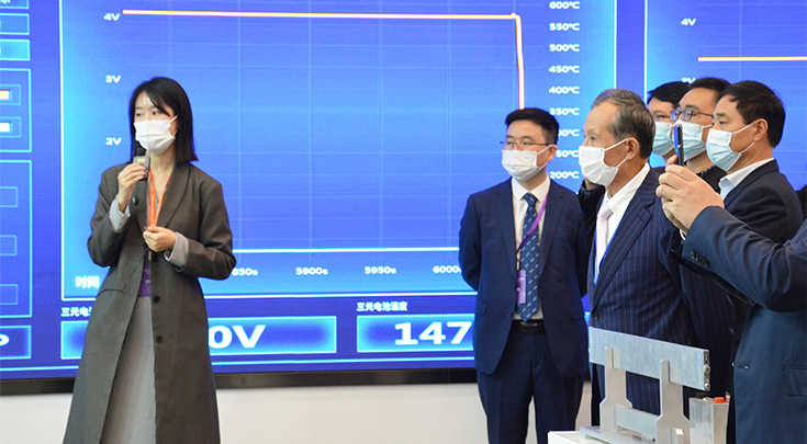 公司总经理沈鸣先生向比亚迪总裁王传福先生、比亚迪董事会秘书李黔先生及参展企业领导、高管做公司业务介绍,公司产品及发展布局得到了王传福先生、李黔先生的高度肯定与赞扬。