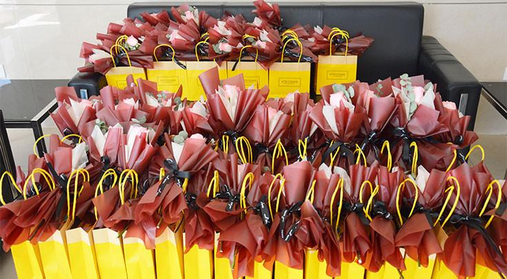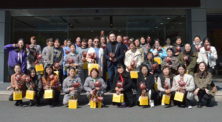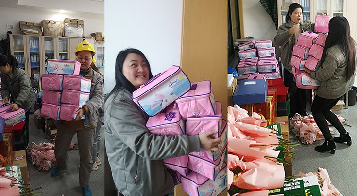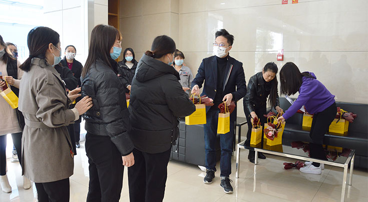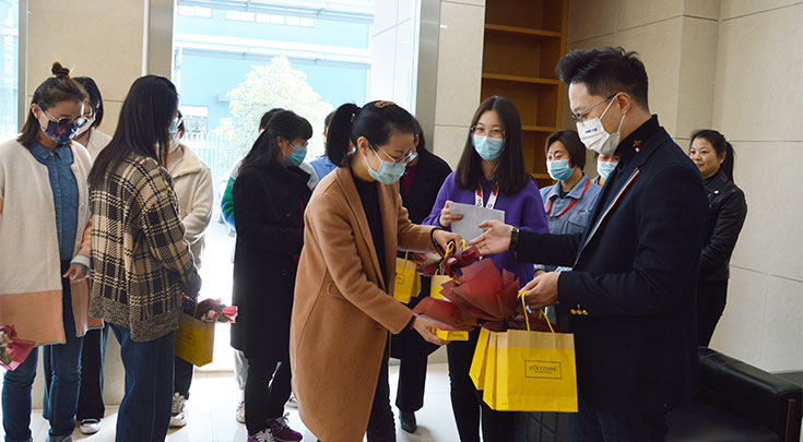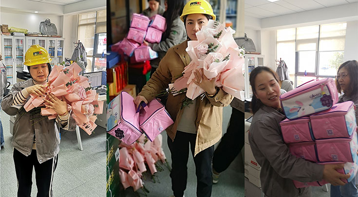 3月8日上午,春意盎然,樱花盛开。为庆祝国际劳动妇女节,关爱全体劳动女同志们,江苏华盛、泰兴华盛公司为全体华盛女神们准备了精美的节日礼物,总经理沈鸣亲自来到活动现场,为华盛女神们发放鲜花和礼品,并给大家送上最美好的祝福,祝愿全体华盛女神们节日快乐,健康美丽!