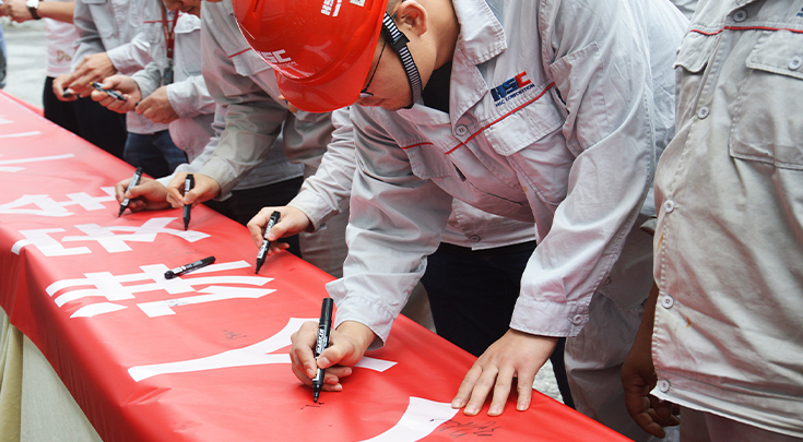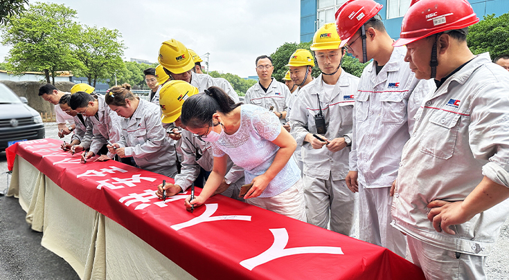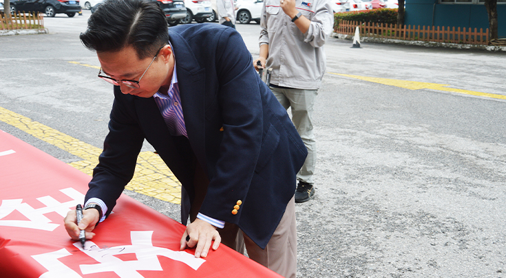 最后,总经理、各部门、各车间员工代表进行安全月启动大会签字仪式。全员为安全生产许下庄严的承诺,把“安全第一,预防为主,综合治理,以人为本”的安全理念贯彻到生产全过程。