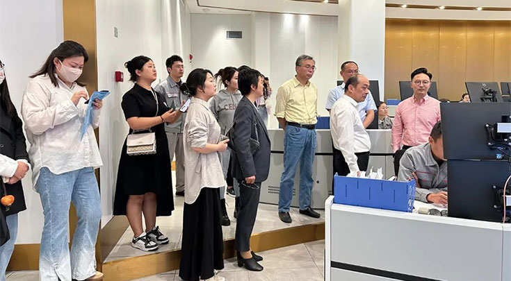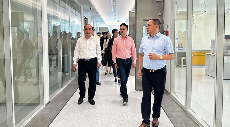 随后,徐主席一行领导参观总部研究院,先进、精细的研发设备配套完备,雄厚且专业的研发团队集合完成,现代简约的办公环境已经形成,总部研究院将攀登华盛锂电研发创新的新征程。徐主席对公司完备的设备与人才团队表示赞扬,期待我们获得更多研发成果,再创佳绩!