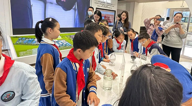 首先,全体师生与家长观看公司宣传片,听取了公司的简要介绍。现场,主持人与学生们的问答互动,增强了学生们认识华盛的兴趣与热情。展厅参观环节,观看公司产品与张家港厂区规划沙盘,学生们直观看到产品实物,让大家对电池电解液添加剂有了具象的认识。
