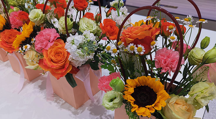 花艺老师现场教学,为大家讲解了向日葵、玫瑰花语,日常的鲜花护理和插花要领。每人一把剪刀和一束花材 ,用心构思创作。在老师的精心指导下,大家完成了色彩缤纷的插花作品。通过插花提升对艺术的认知,提高动手能力和陶冶情操,同时也增进了同事之间的情感交流。