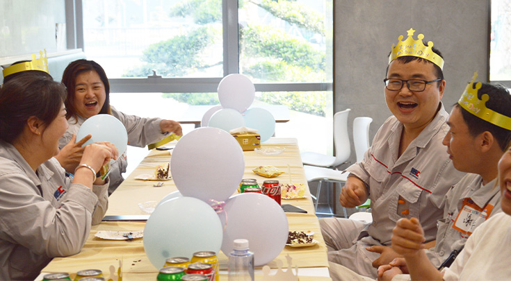 5月18日,绿意盎然,阳光正好,在这个充满生机与活力的月份,在三厂一楼食堂,5月员工的生日会如期而至,让我们为各位寿星送上最温暖的祝福!华盛锂电为各位寿星准备了丰盛零食与水果、精美的生日礼包、快乐游戏的同时真心祝愿大家生日快乐!
