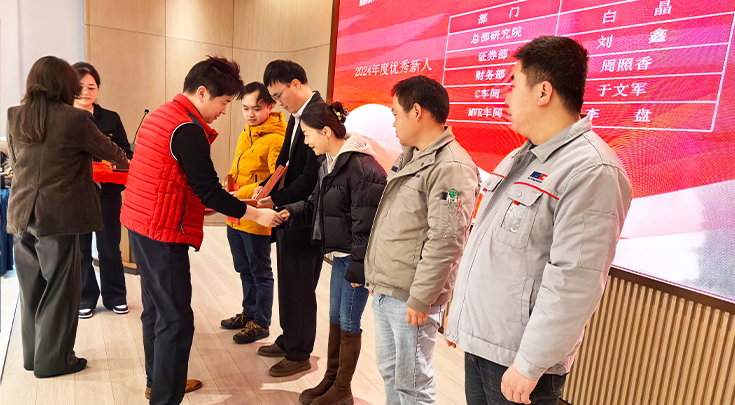 2月12日下午,公司行政楼一楼多功能厅举办了2024年度表彰大会,华盛锂电董事长沈锦良、总经理沈鸣、副总经理李伟锋、副总经理、泰兴华盛总经理林刚、副总经理、总部研究院院长张先林、副总经理、董事会秘书黄振东、华盛联赢总经理沈刚、财务总监任国平等领导齐聚一堂,共同为过去一年表现卓越的团队和个人颁奖,见证荣耀时刻。